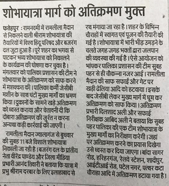 शोभायात्रा मार्ग को अतिक्रमण मुक्त।