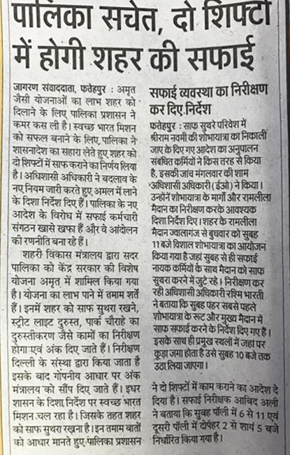 पालिका सचेत, दो शिफ्टों में होगी शहर की सफाई ।
