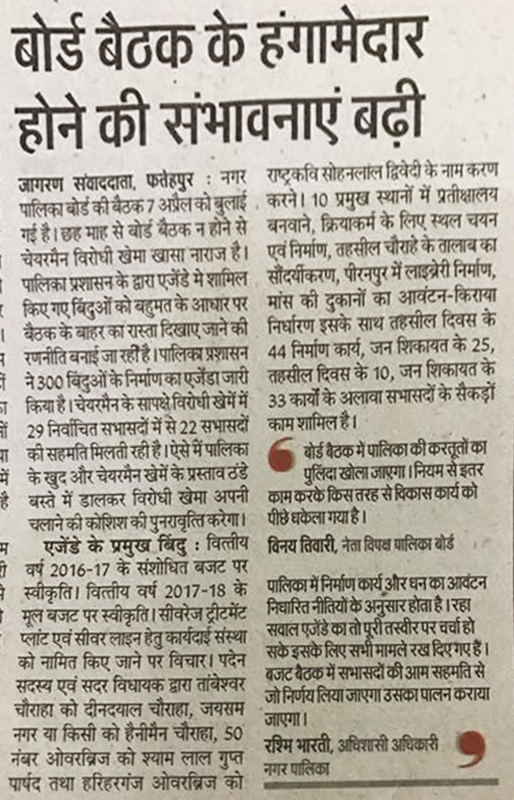 नगर पालिका की बैठक ७ अप्रैल को बुलाई गई है।