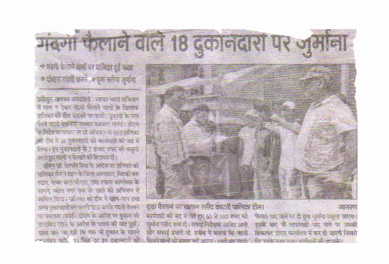 गन्दगी फैलाने वाले 18 दुकानदारों पर जुर्माना