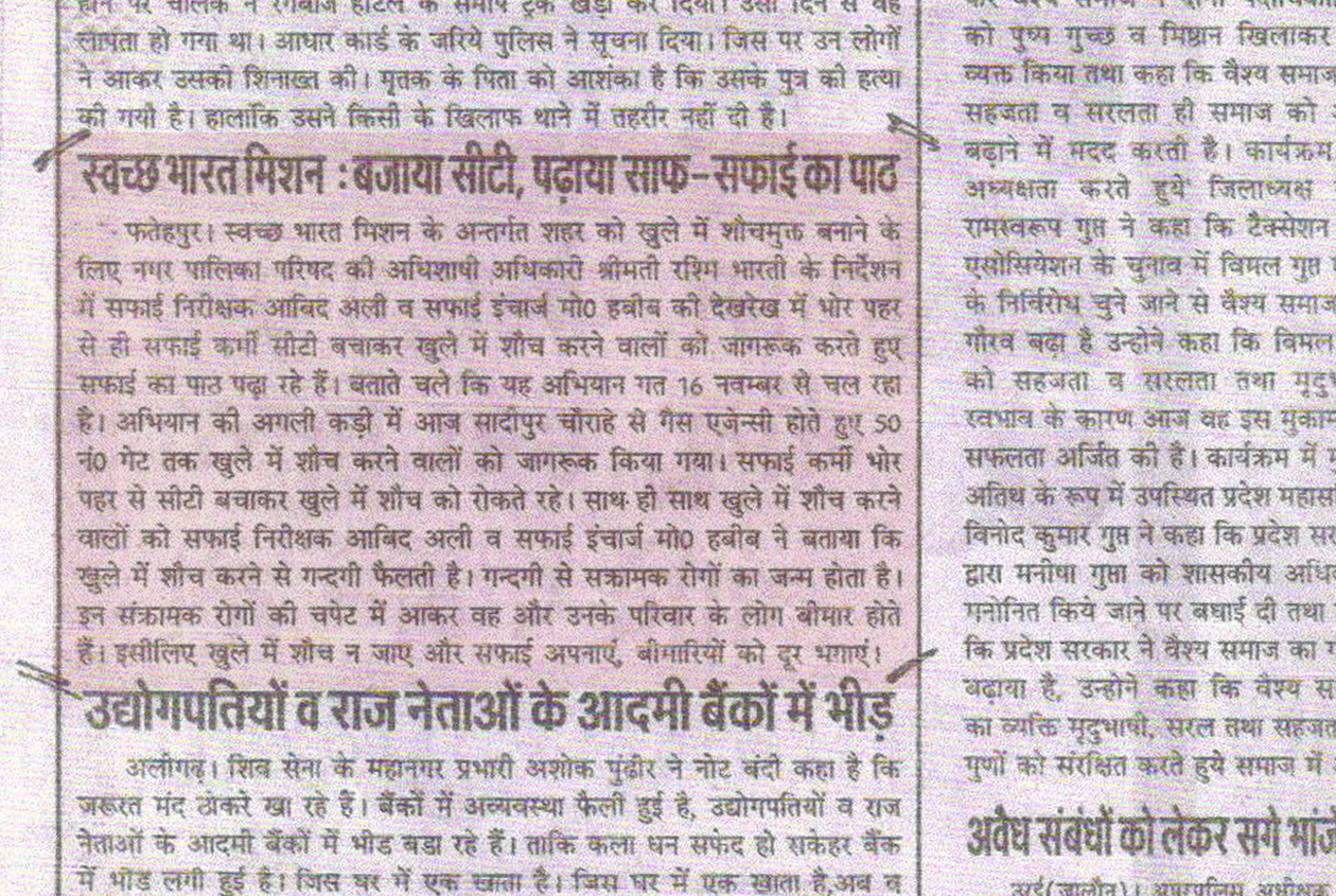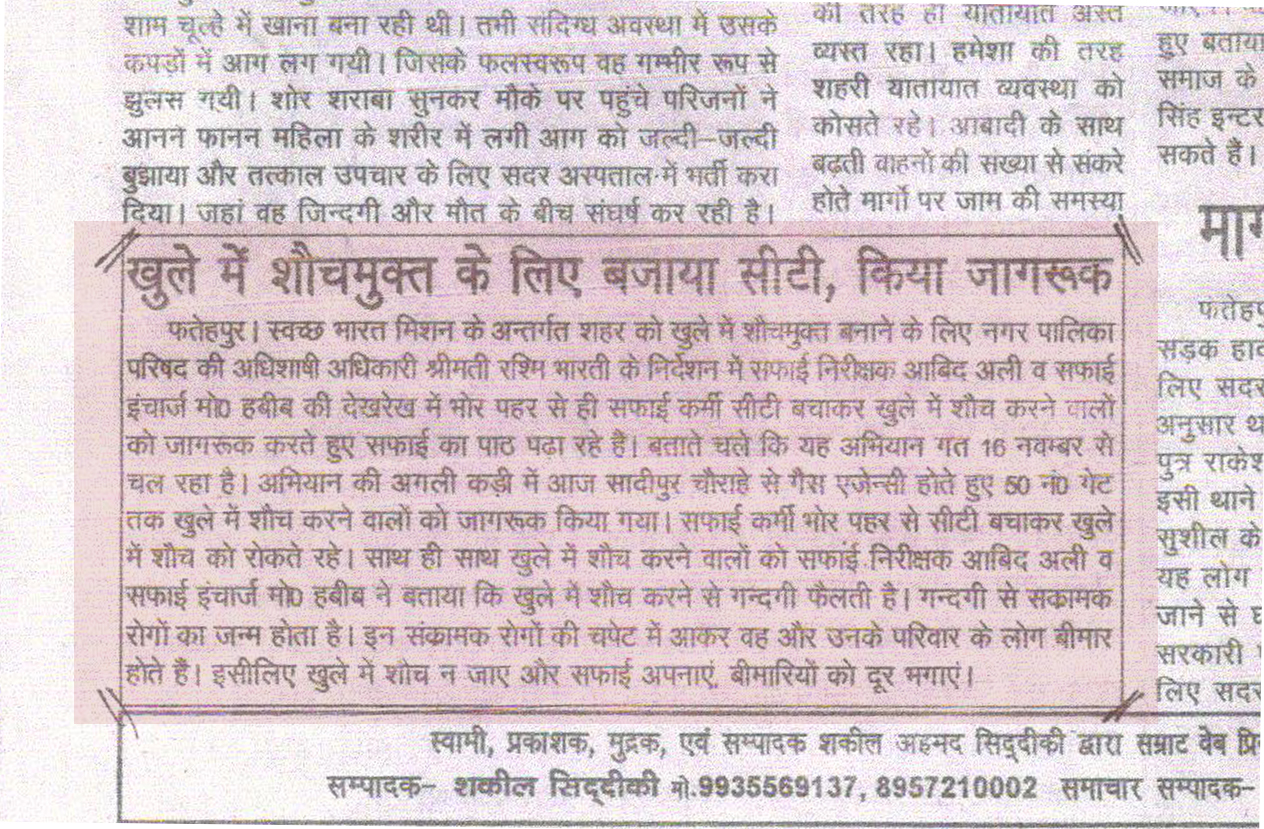 स्वच्छ भारत मिशन के अंतर्गत शहर को खुले में शौचालय बनाने के लिए नाग पालिका परिषद् की अधिशासी अधिकारी श्रीमती रश्मि भारती के निर्देश में ......
