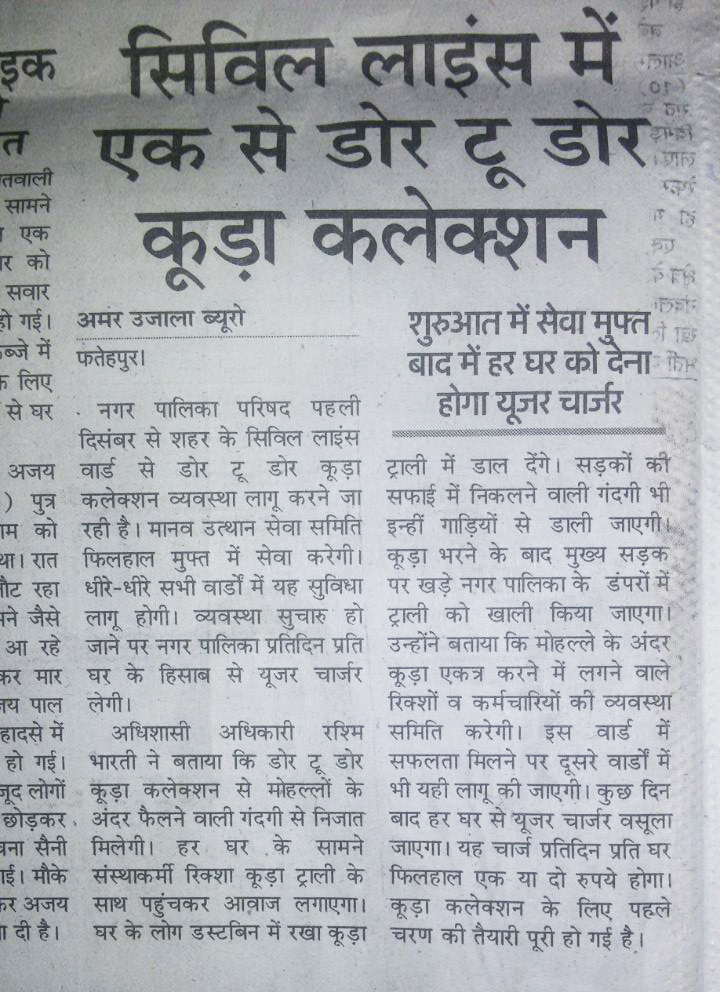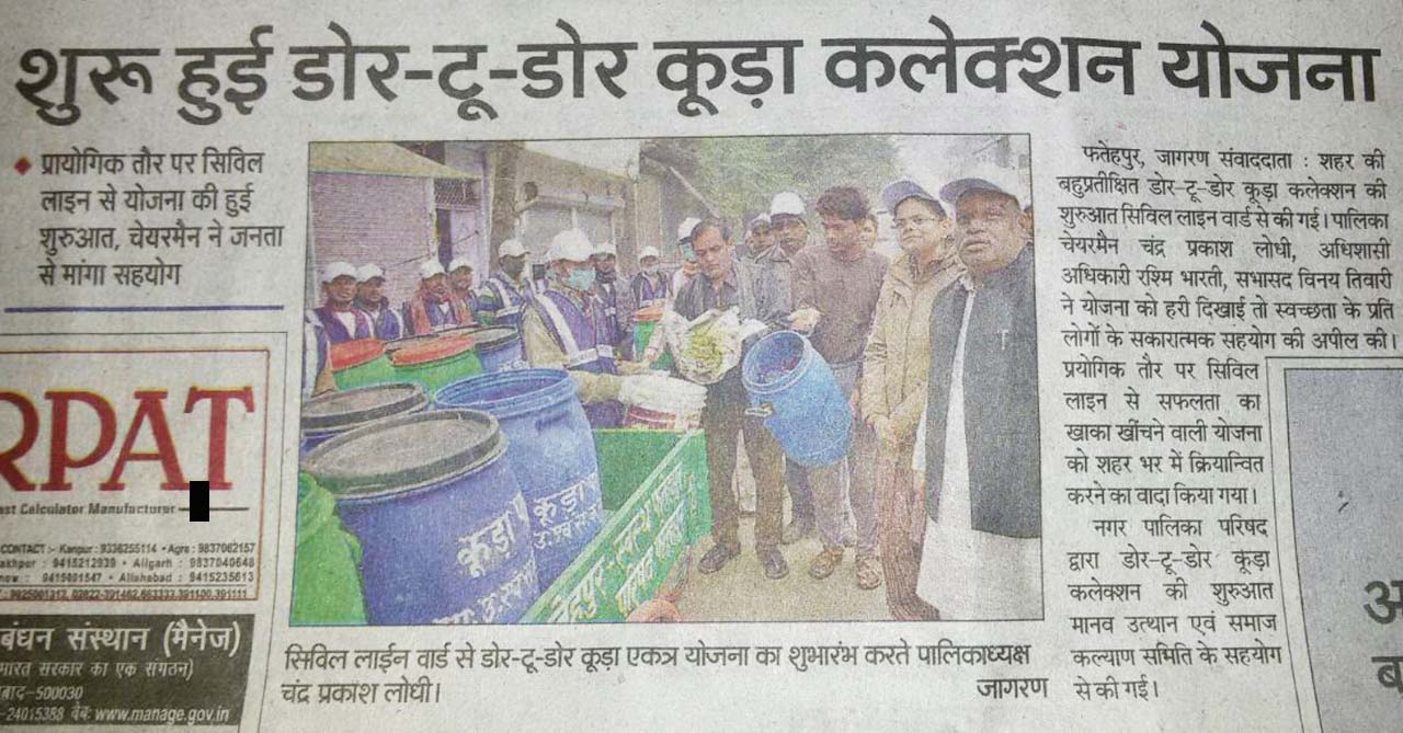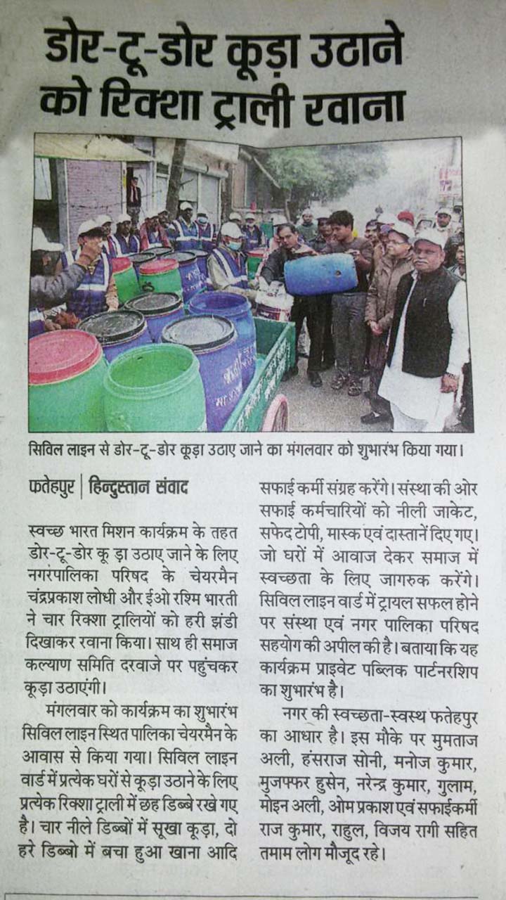 सिविल लाइन्स से डोर टू डोर कूड़ा उठाए जाने का मंगलवार को शुभारम्भ किया गया