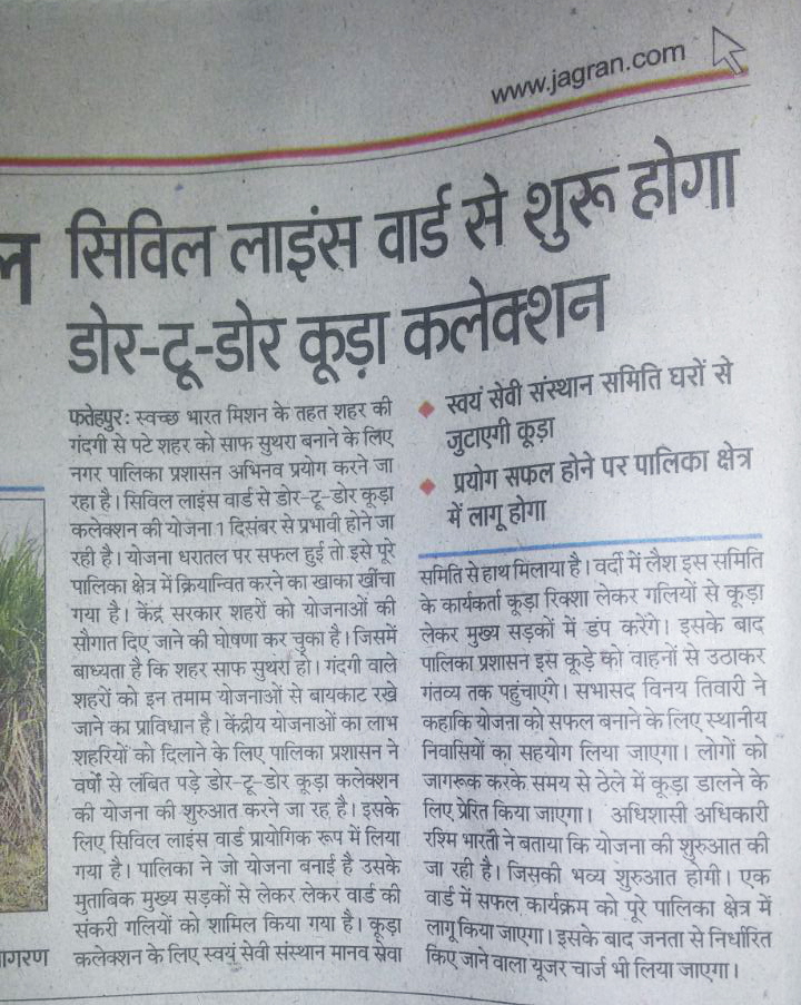 शुरू हुई डोर टू डोर कूड़ा कलेक्शन योजना।