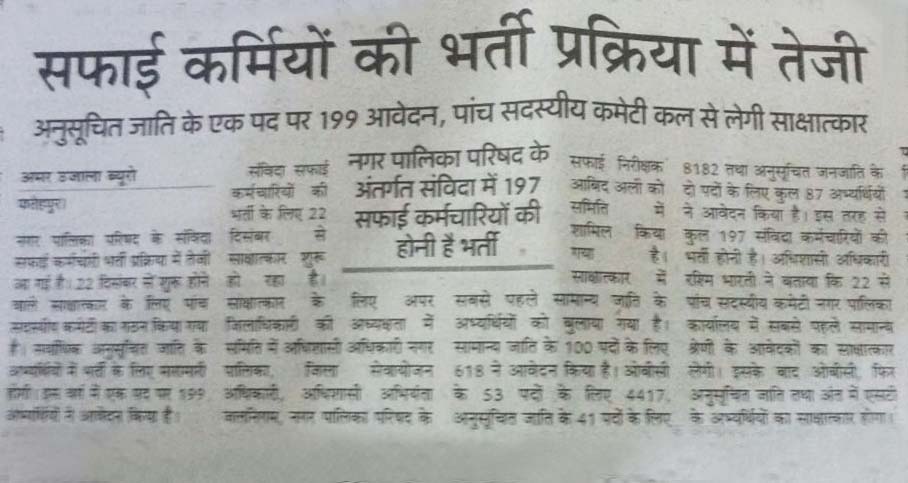 सफाई कर्मियों की भर्ती प्रक्रिया में तेजी।