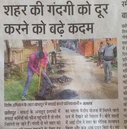 विशेष अभियान के तहत खम्भापुर मे सफाई करते पालिका कर्मी।