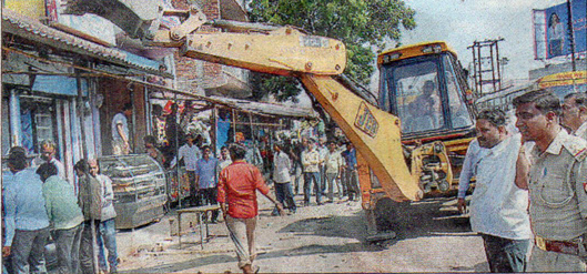 फुटपाथ के अतिक्रमण पर गरजा बुलडोज़र