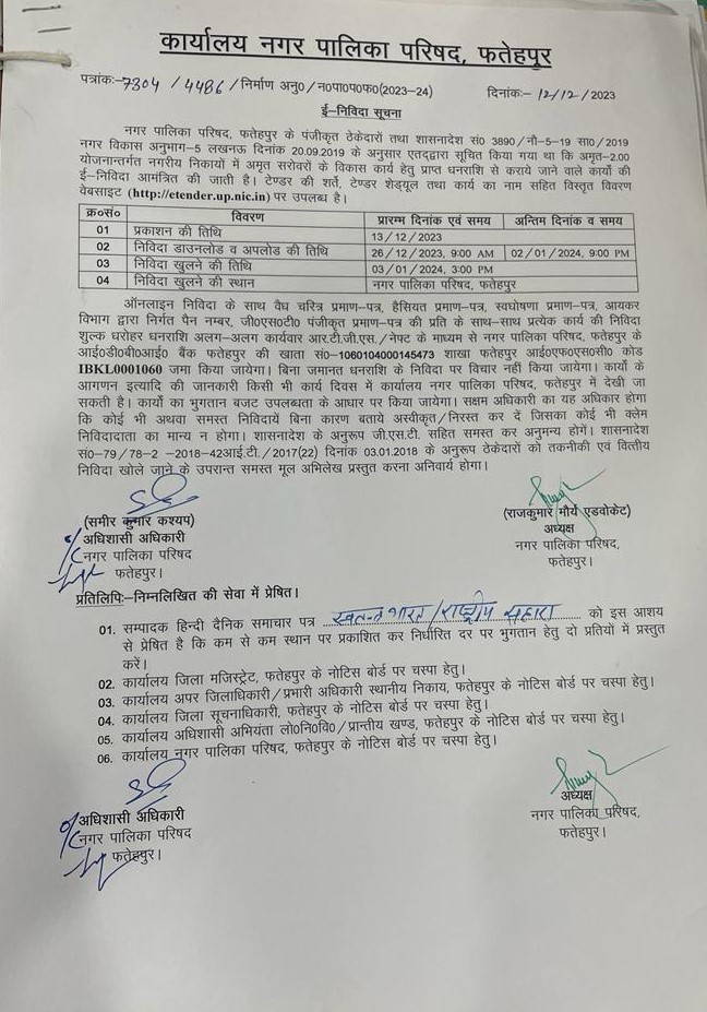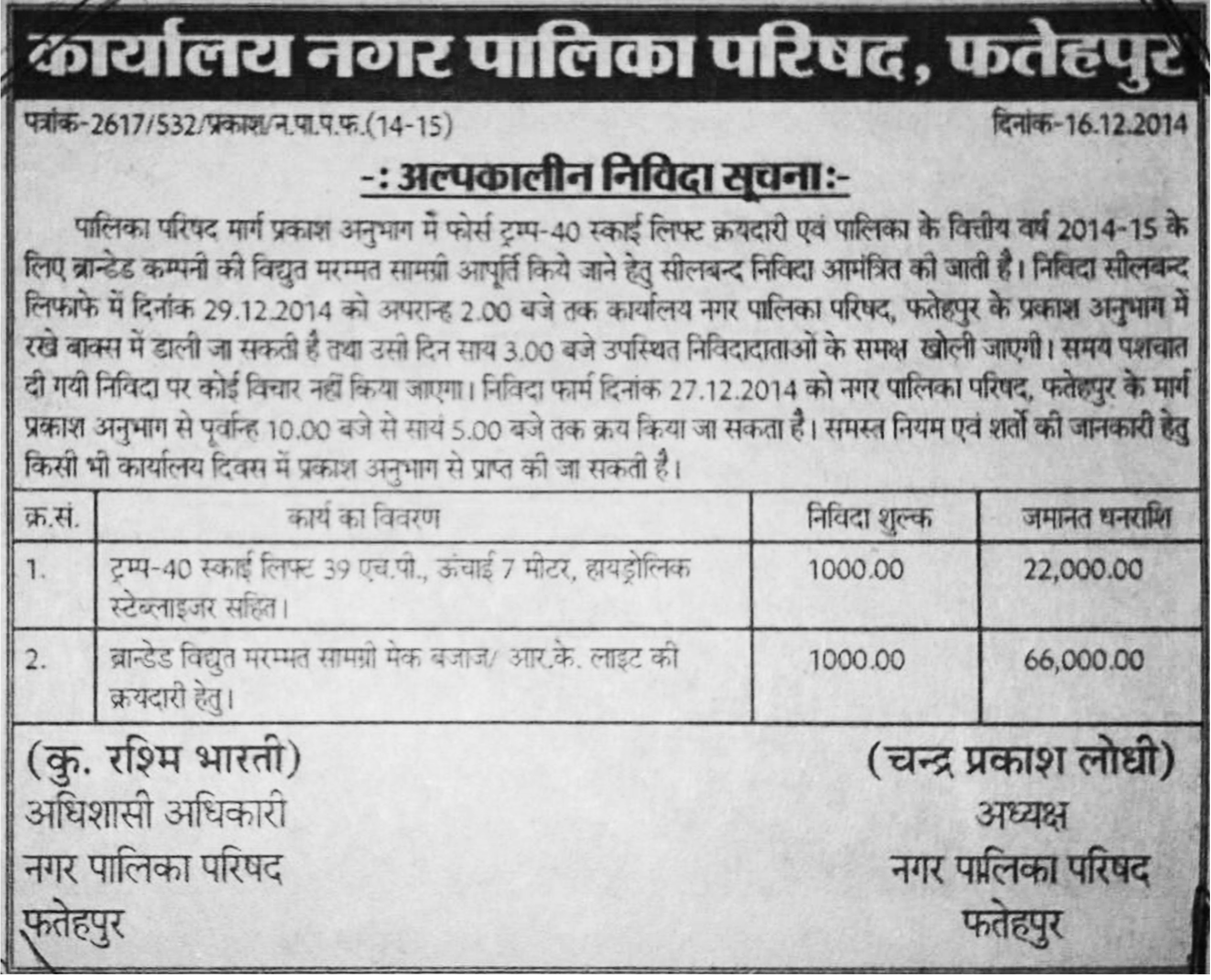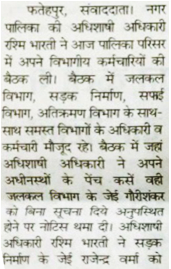 vf/k’kk"kh vf/kdkjh jf’e Hkkjrh us crk;k fd uksfVl ds ckn vxj ;g yksx pV~~Vs ugha gVkrs gSa rks fQj eos’kh tCr djus dh dk;Zokgh dj nh tk;sxhA fjgk;’kh bykdksa esa Áfrcaf/kr dke ugha gksus fn;k tk;sxkA