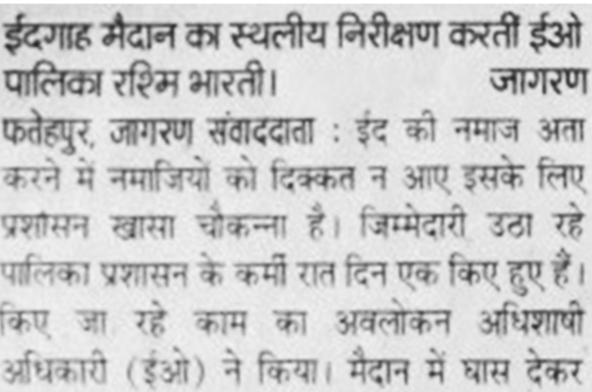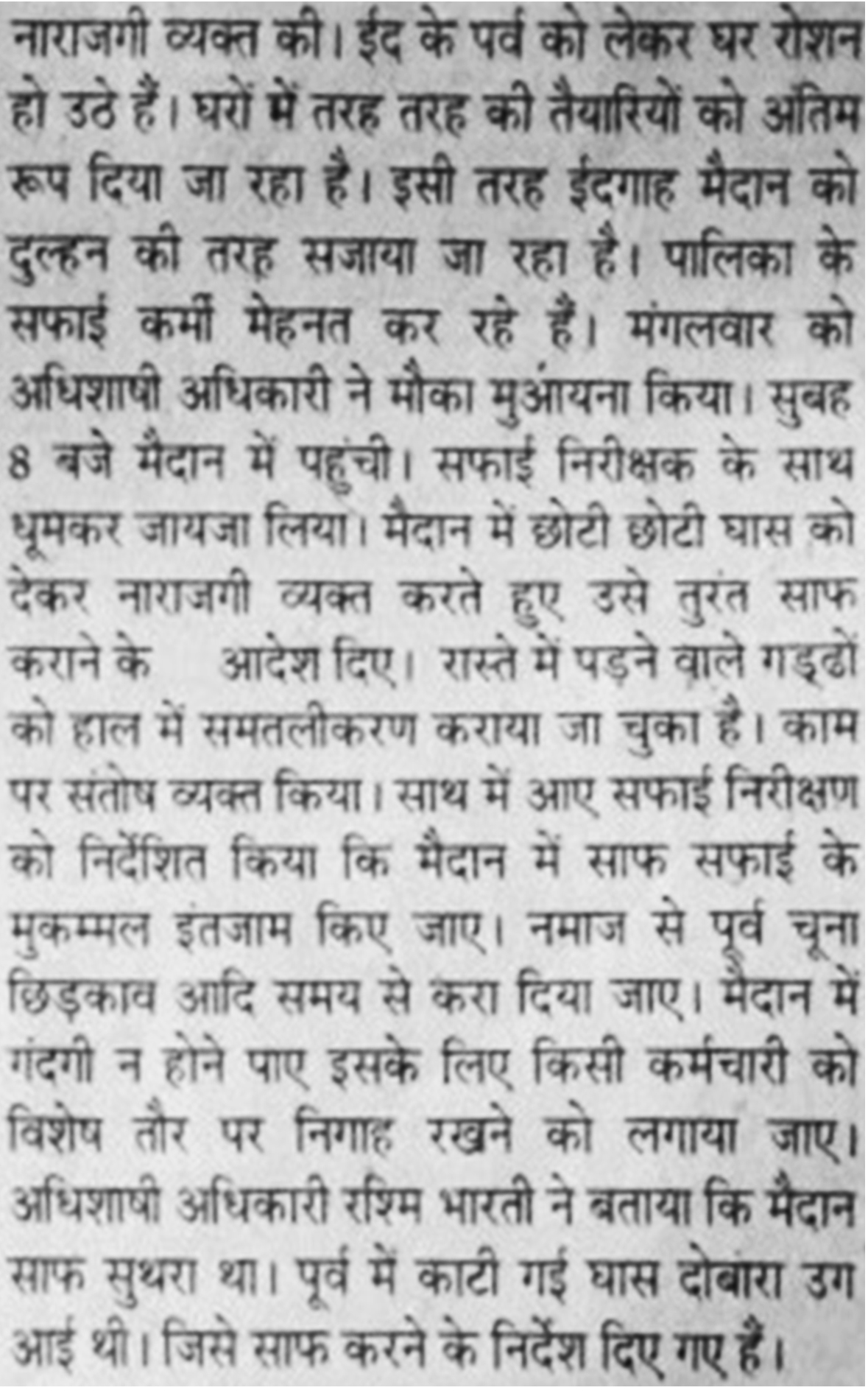 ईदगाह मैदान में घास देख कर भड़की ईओ