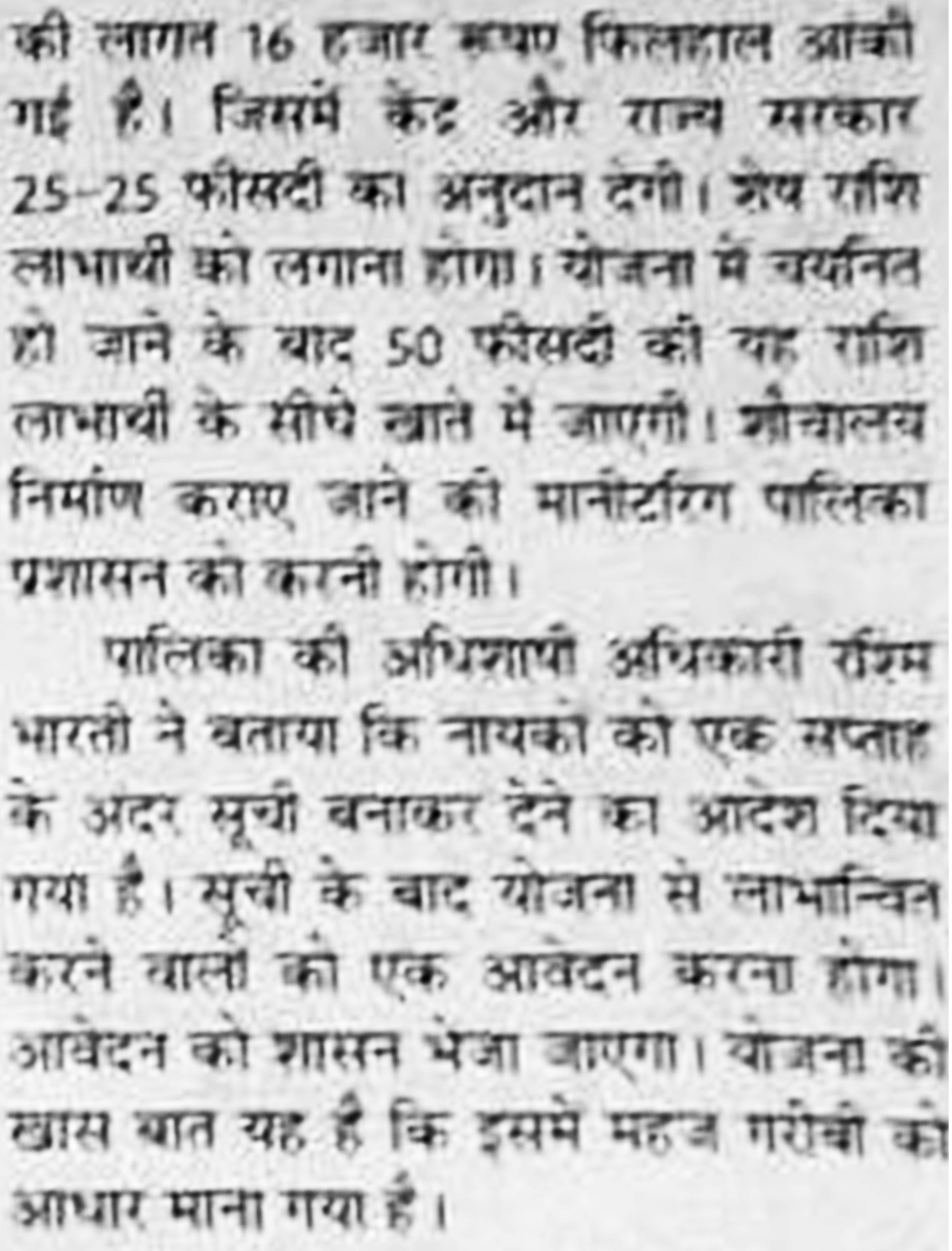 व्यक्तिगत शौचालय निर्माण हेतु संलग्न सूची।