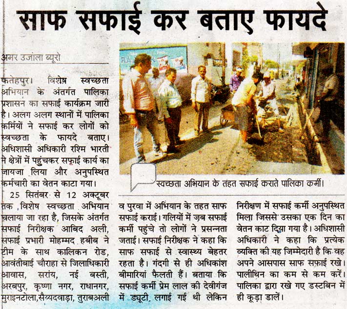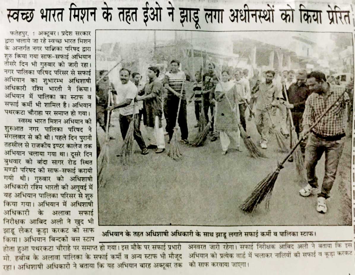 स्वच्छ भारत मिशन के तहत ईओ ने झाड़ू लगा अधीनस्थों को किया प्रेरित
