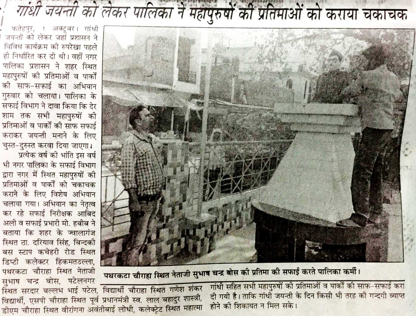 गांधी जयंती को लेकर पालिका ने महापुरुषों की प्रतिमाओं को कराया चकाचक