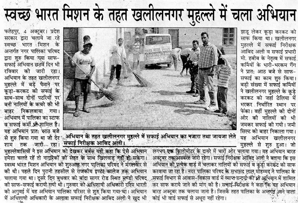 स्वच्छ भारत मिशन के तहत खलीलनगर मुहल्ले में चला अभियान