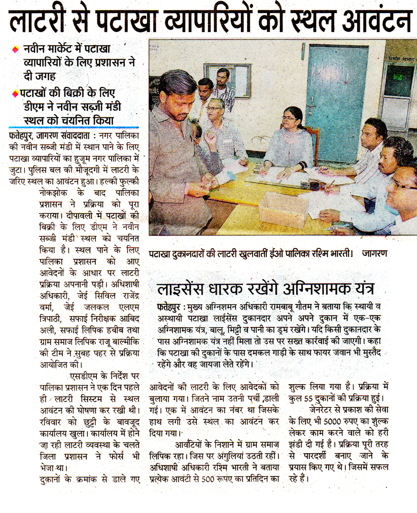 नगर पालिका की नवीन सब्जी मंडी में स्थान पाने के लिए पटाखा व्यापारियों का हुजूम नगर पालिका में जुटा | पुलिस बल की मौजूदगी में लाटरी के जरिये स्थल का आवंटन हुआ |