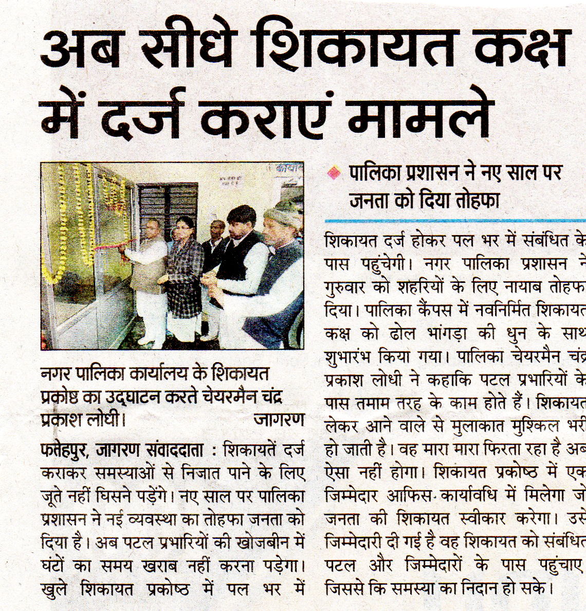 समय खराब नहीं करना पडे़गा। खुले शिकायत प्रकोष्ठ में पल भर में शिकायत दर्ज होकर पल भर में संबंधित के पास पहुंचेगी। नगर पालिका प्रशासन ने गुरूवार को शहरियों के लिए नयाब तोहफा दिया।