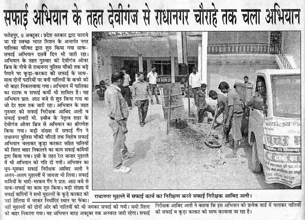 सफाई अभियान के तहत देवीगंज से राधानगर चौराहे तक चला अभियान - 08/10/2015