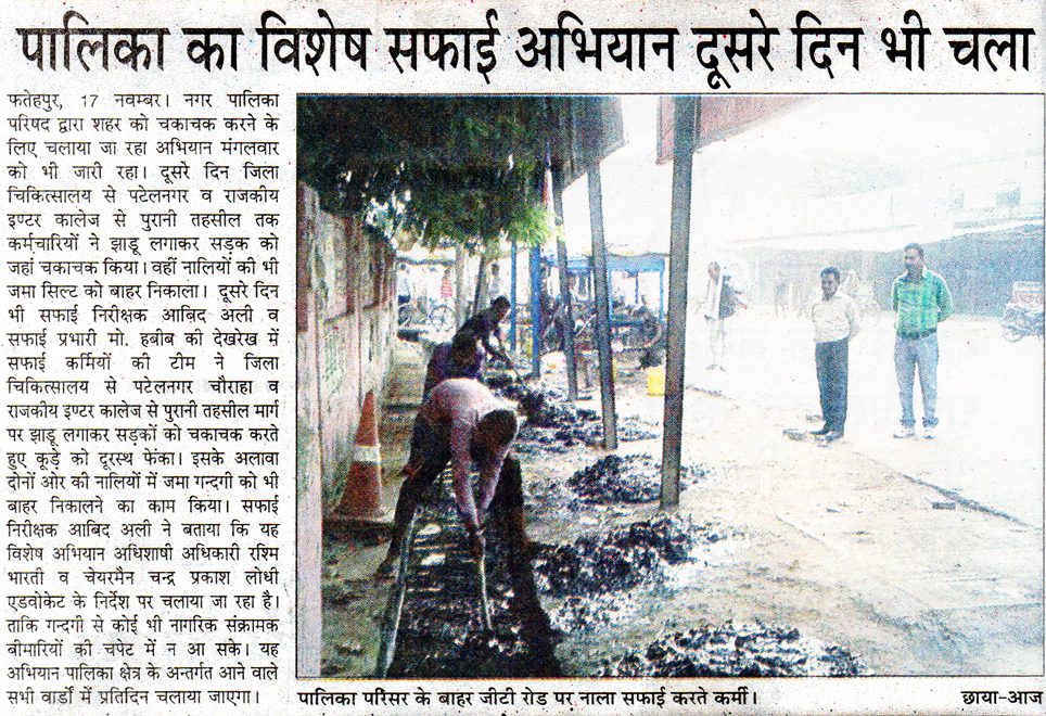 पालिका का विशेष सफाई अभियान दूसरे दिन भी चला - 17/11/2015